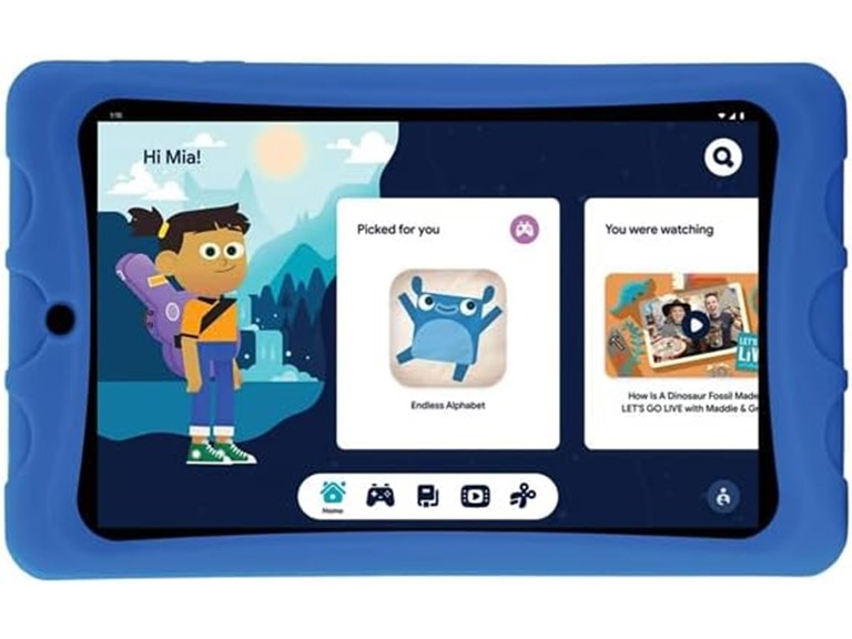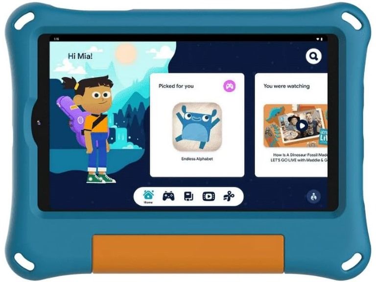 onn. 8" Kids Tablet, 1280 x 800 Resolution, 32GB, (2024 Model), Android 14 (Includes Aqua Rubberized Case with Kickstand) (Renewed) (Open Box)